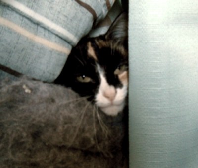 1. My cat, Angel, is very jealous… and has made it impossible for us to get another cat, or kitten, because she hides and cries and hisses and is just a joy overall. We did, however, just get a puppy, and so far she has been more angered than insulted. She bops him if he barks, and if he chases her she can just hop in a chair since he can't jump. She's walking around like she owns the place, and I'M SO RELIEVED! I've never seen her this comfortable around another animal, except when she was a kitten and we had another cat (they were close, and he later passed away because of a severe UTI/blockage). She has let the puppy sniff her and sniffed him, and when he is calm they get along alright and take turns chasing eachother :D. Anyway, I get the face off thing ;). We were expecting the dog to win, but when she just turned around and faced him, he flipped out-and she's won very battle since.