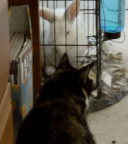 Thanks to everyone for their help last week, especially to Nela, who provided me with some links to articles online about cats and rabbits. I learned that rabbits are more often-than-not the dominant ones.