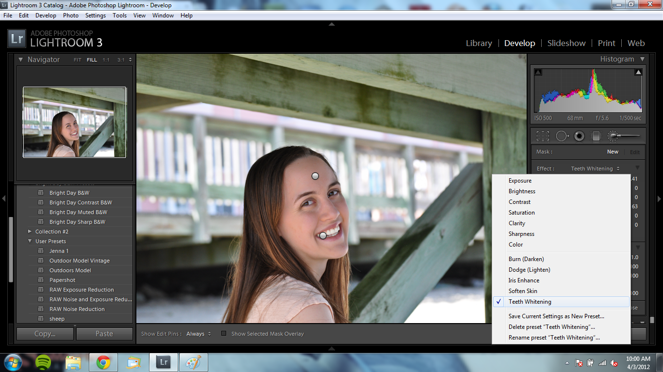 Those of us who shoot portraits probably will be missing Picnik for it’s skin-softening and teeth whitening abilities – not so much for the cross process action or variety of frames. In this tutorial, I’m going to show you how to achieve these same, or even better results in Lightroom 3.