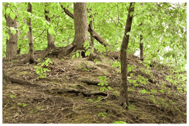It was beautiful. Like a prehistoric forest, untouched by human hands. A hawk flew out of a nearby tree as I noisily stumbled down the steep hillside. (My camera + tripod even made it down in a whole state.)