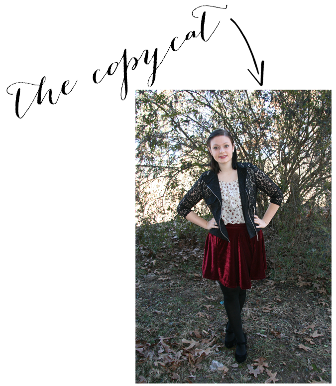The shirt, tights, and shoes were pieces I already owned. Remember that your celebrity look doesn’t have to be an exact replica, no matter how gorgeous it may look on them. Put your own twist on it.