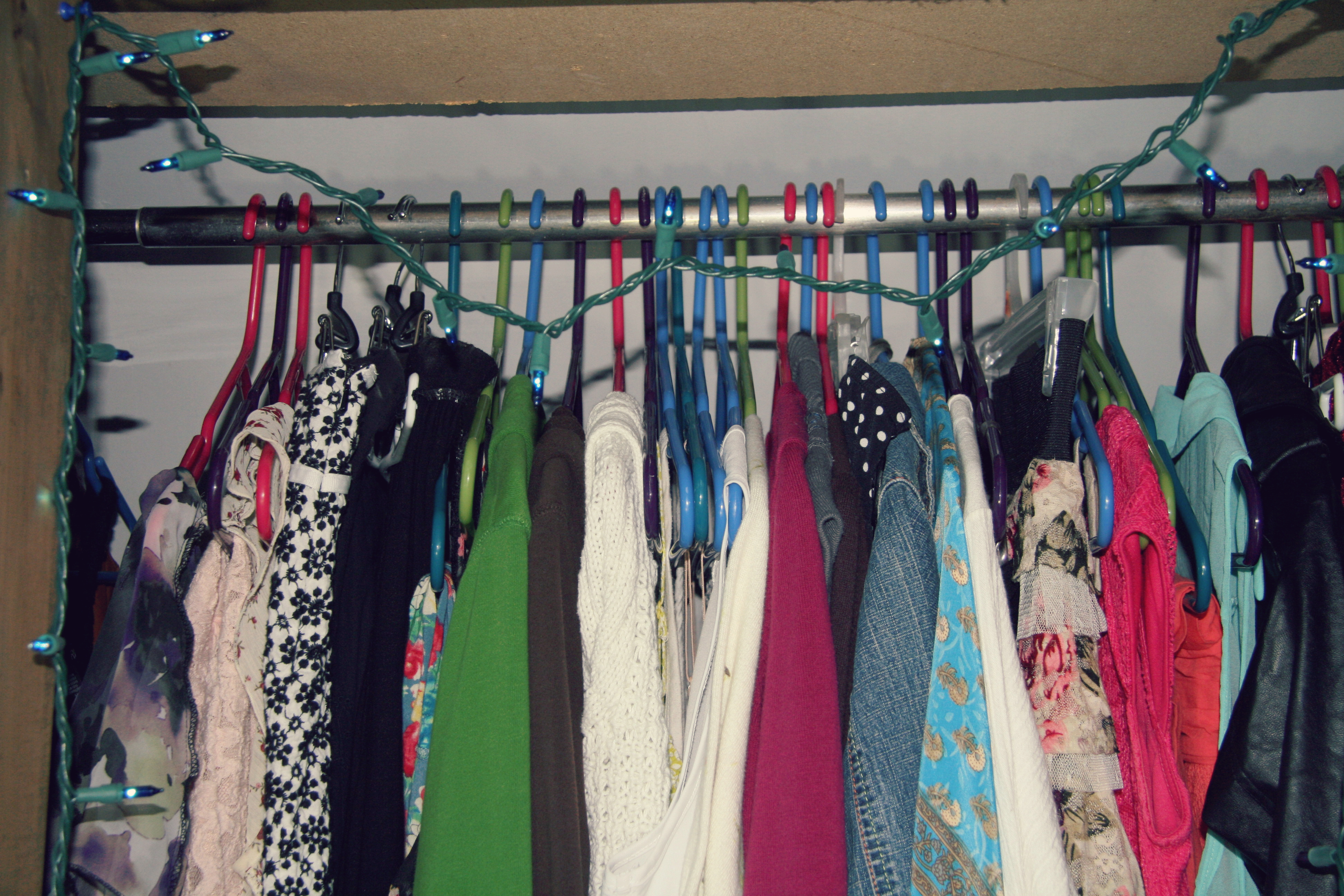 Start by hanging everything up backwards. As you wear them and hang them back up, you can flip the hanger back around. Anything still facing backwards when it’s time to pack up for winter again needs to be donated or sold.