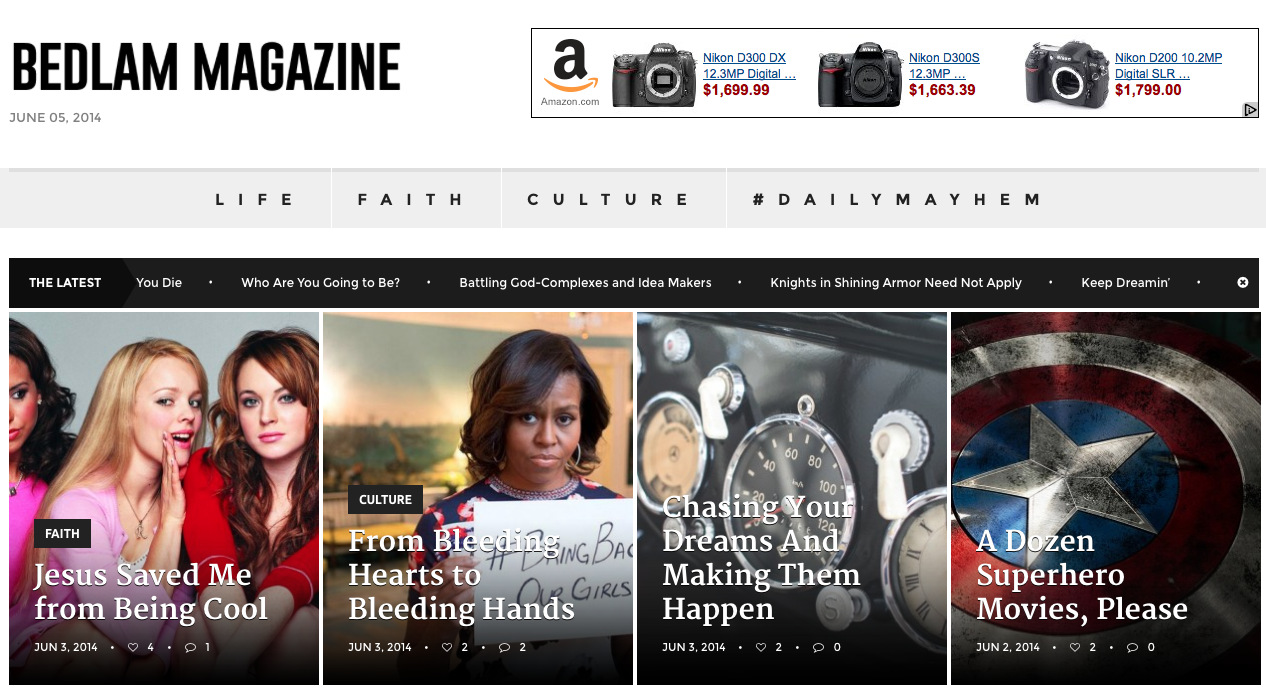 My partners (Jayson Schmidt and Cassi Clerget) and I were growing complacent with a lot of the content we were seeing online in the Christian community. A lot of it seemed very safe and uninspired. So we decided to create a place where anyone could come and learn and share about anything. Rape culture, drugs, sex, abuse, everything is up for debate at Bedlam and we aim to do that with compassion and grace. We want to cause a commotion but we never try to incite or anger anyone. We’re about family and supporting one another. I think that sets Bedlam apart from a lot of other sites who also focus on faith and culture.